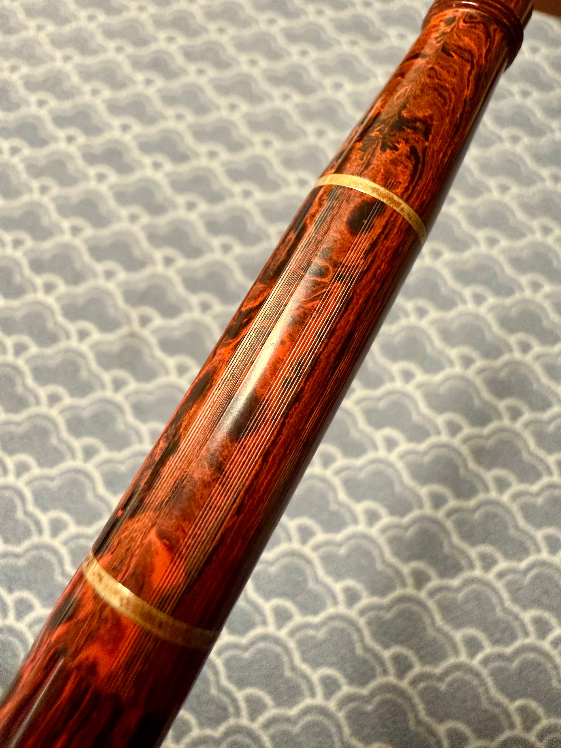 Bayards are known for their distinctively crisp lined chasing across the pen barrels that play with the light extremely well as the quality of the ebonite used for their pens was top notch in both polished shine and durability (lightweight even when thick).