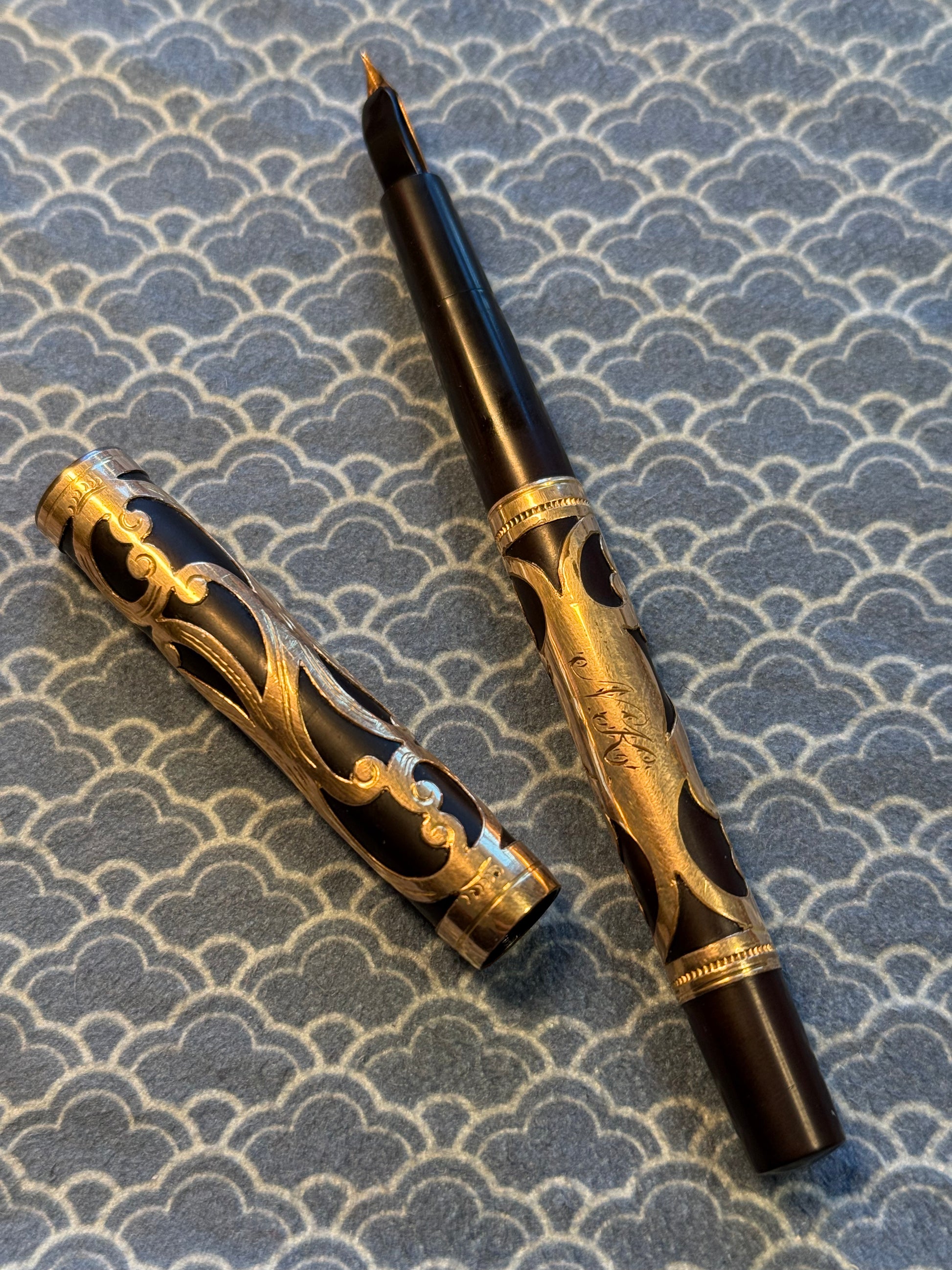 Waterman 12 Sinuous Scroll, Gold Overlay Ebonite, #2 14k Flex