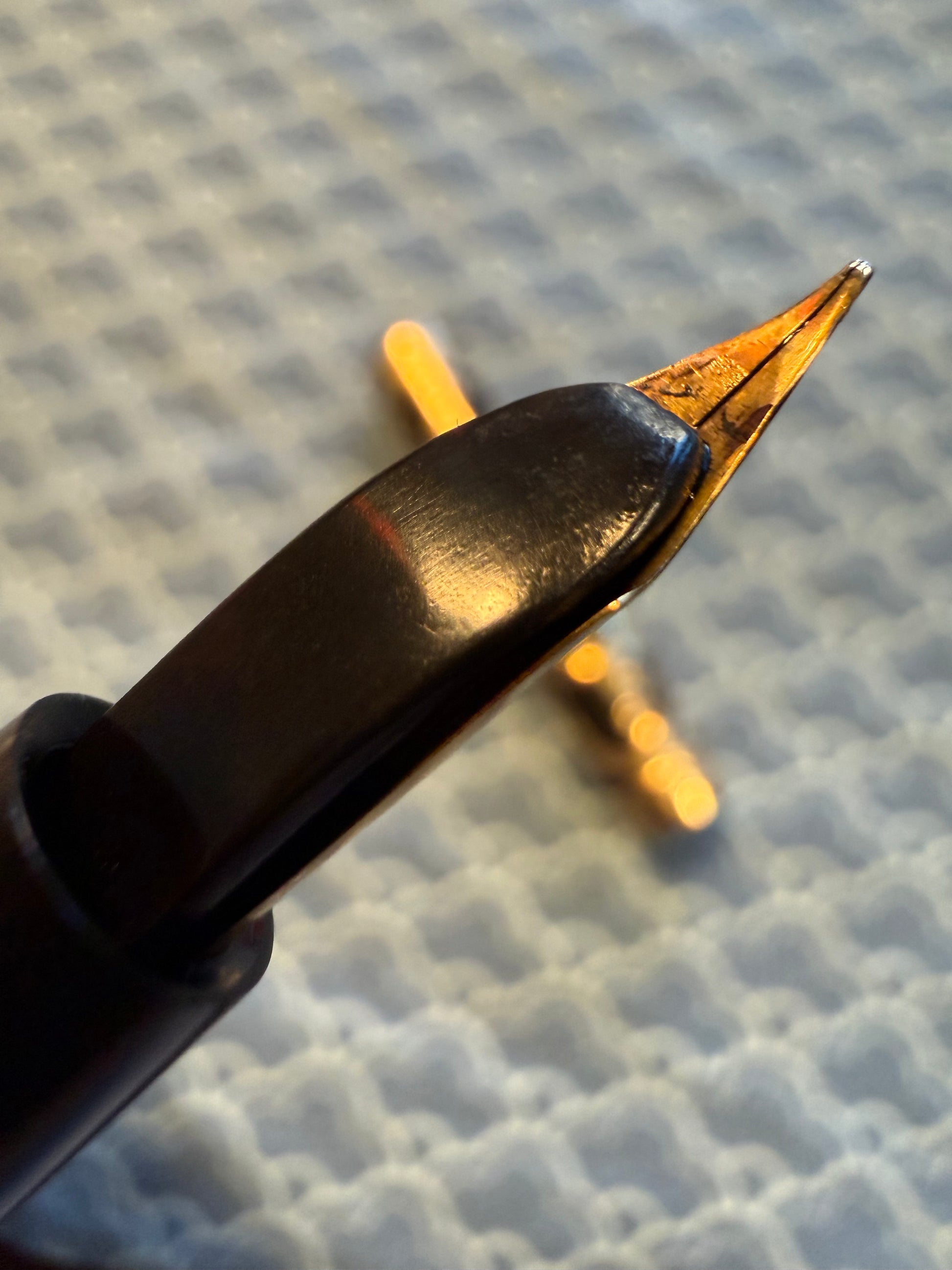 Beautifully soft noodle flex #2 New York nib with superb nib feel, smooth flex, and well controlled flow.