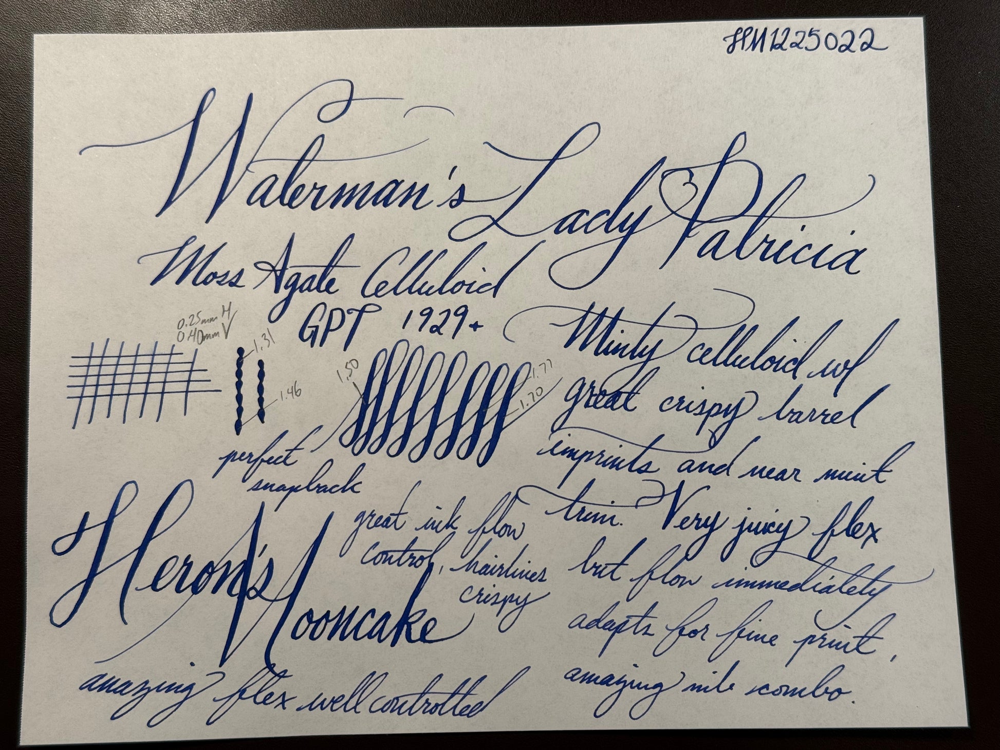 - Nice juicy flex strokes, will show off ink characteristics very well.