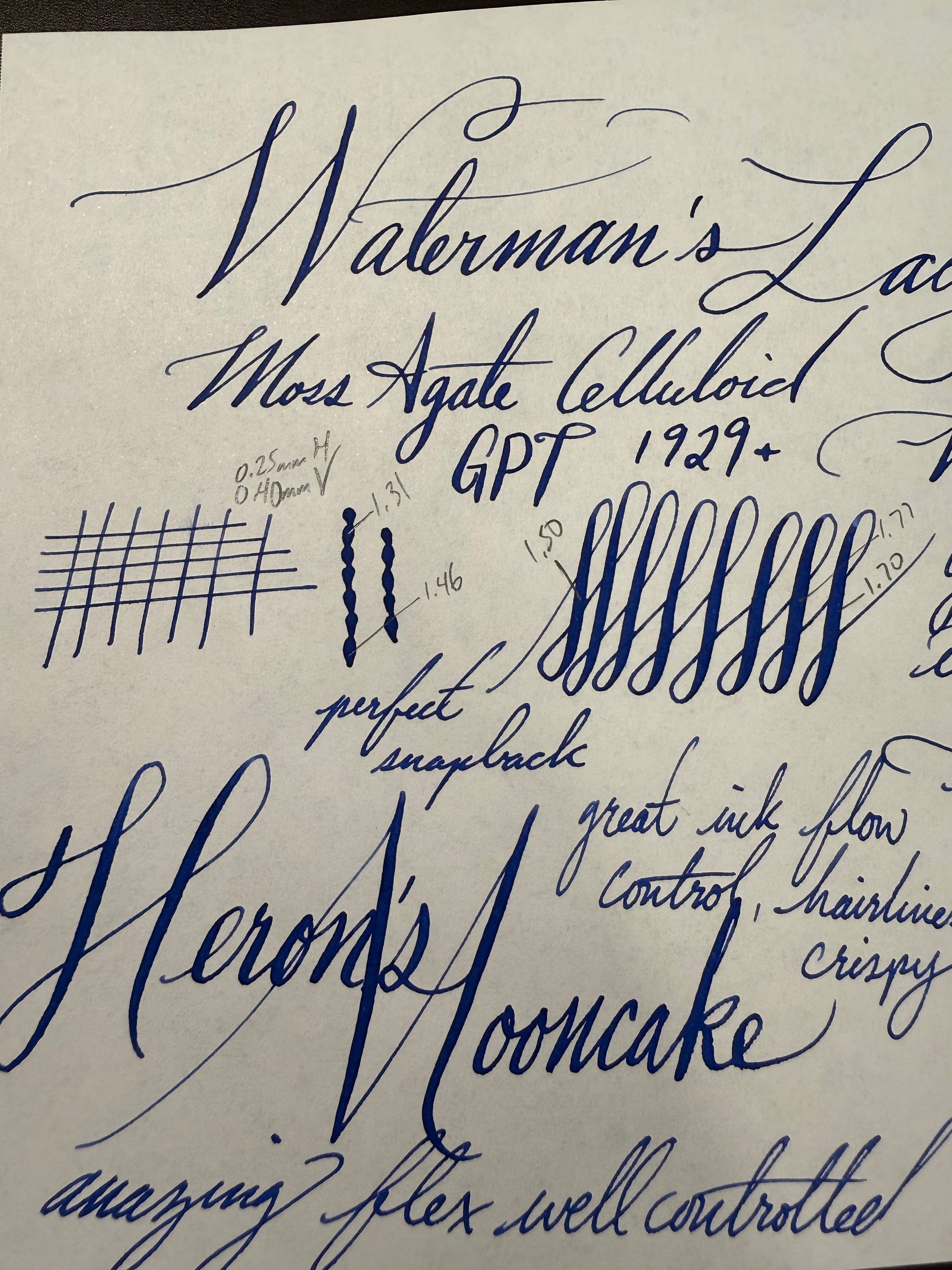 - Fantastic #2 nib with wispy hairlines on the upstroke, and nice wide flex on the down, comfortably reaches 1.77mm wide lines with light pressure, but even more impressive is the ink flow matching the snapback where you get super crispy thin lines even after flexing super wide.