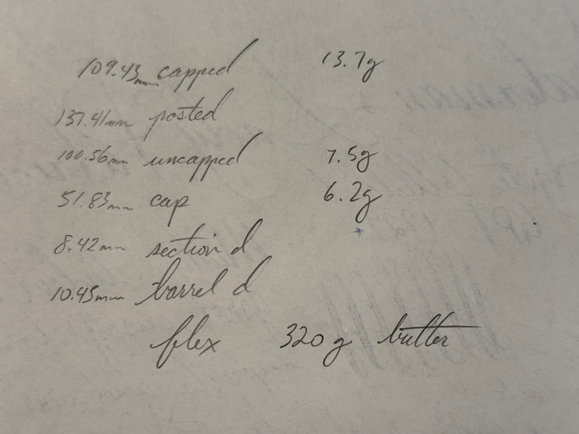 Nib flexibility is such a controversial topic, but there needs to be some level of consistency so please take this table as a frame of reference for my restorations and as someone who is writing in a calligraphic/spencerian style of cursive script. Without objective measurements, flexibility terms such as wet noodle are useless as someone with stronger forearms and grip strength will make even manifold nibs into a wet noodle.